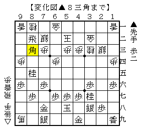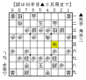 ただし△1八馬の瞬間が後手の馬が少し遊んでいるので、▲3五飛から▲5三歩として先手が少し苦しいながらも互角だったようです。