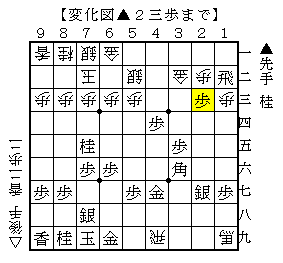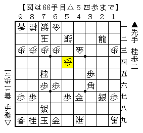 △5八歩▲同飛△5七歩で、ソフトの評価値+91で互角。