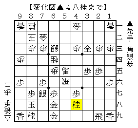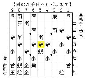▲5八歩は△5七歩成を受けただけで、▲3五角として△5七歩成なら▲5三歩のような感じで勝負すべきだったようです。