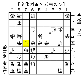 この手順なら、後手から5筋に歩を伸ばされることはありませんし、先手から5筋に歩を使える筋がありそうです。