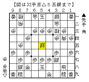 後手が居玉のまま△6五銀と出て、次に△7六銀のような手を狙いとしました。