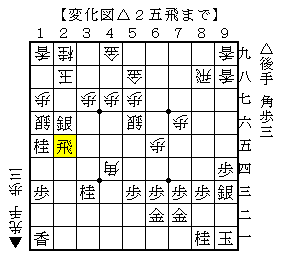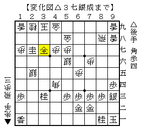 本譜は以下、▲4五歩△同歩▲2二角成△同金▲6六角△3三角▲同角成△同桂▲3七桂△4六歩で、ソフトの評価値-130で互角。