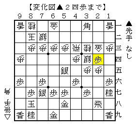 この手順の▲2五歩ですが、本局ではこの手が変化としてよく出ていました。